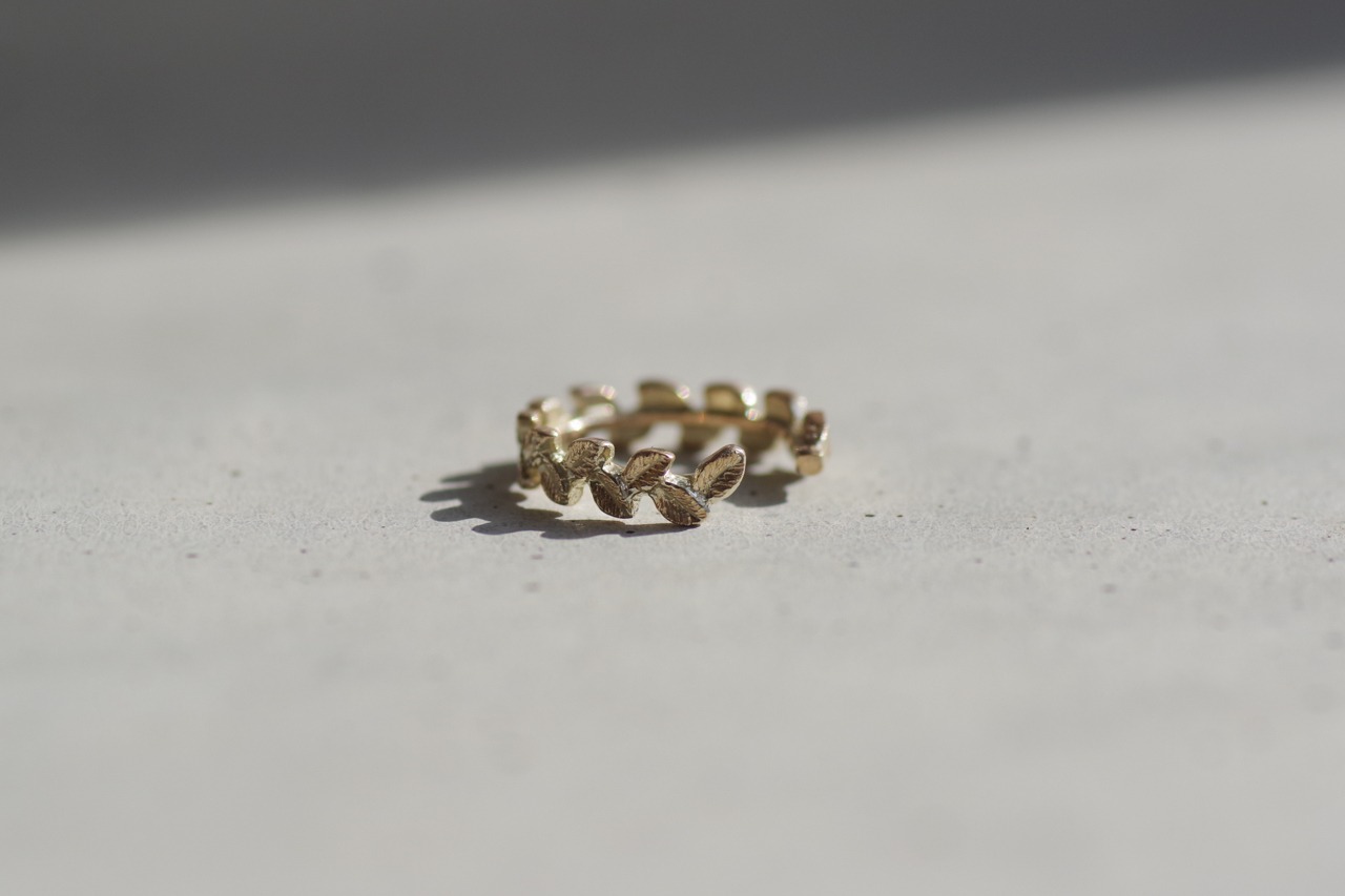 葉っぱの一枚一枚に葉脈のテクスチャーを一本一本手作業で入れているので独特の仕上げになっています。