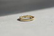 大きさの異なるダイヤを留めた遊び心のある指輪です。