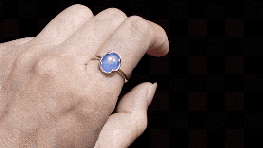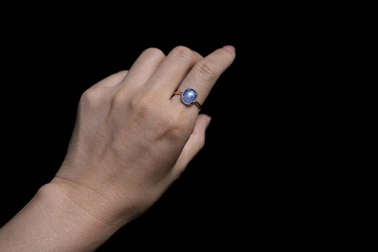 スターサファイアは、サファイアの中でもスター効果(アステリズム)が出る石のことです。サファイアはコランダムに属する鉱物で、内部に含まれるルチルなどの包有物が規則的に配列することで、光が特定方向に反射し、表面に星状の光の筋が現れます。
