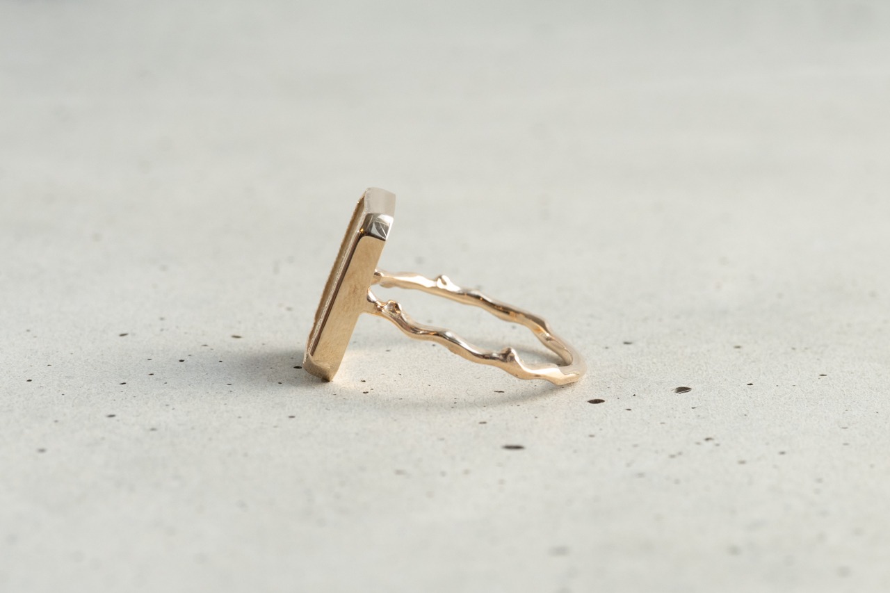 模様は特に風景画になるような部分を厳選して切り取っていて、石枠も額縁をイメージしています。アーム部分は植物の枝をモチーフにしています。