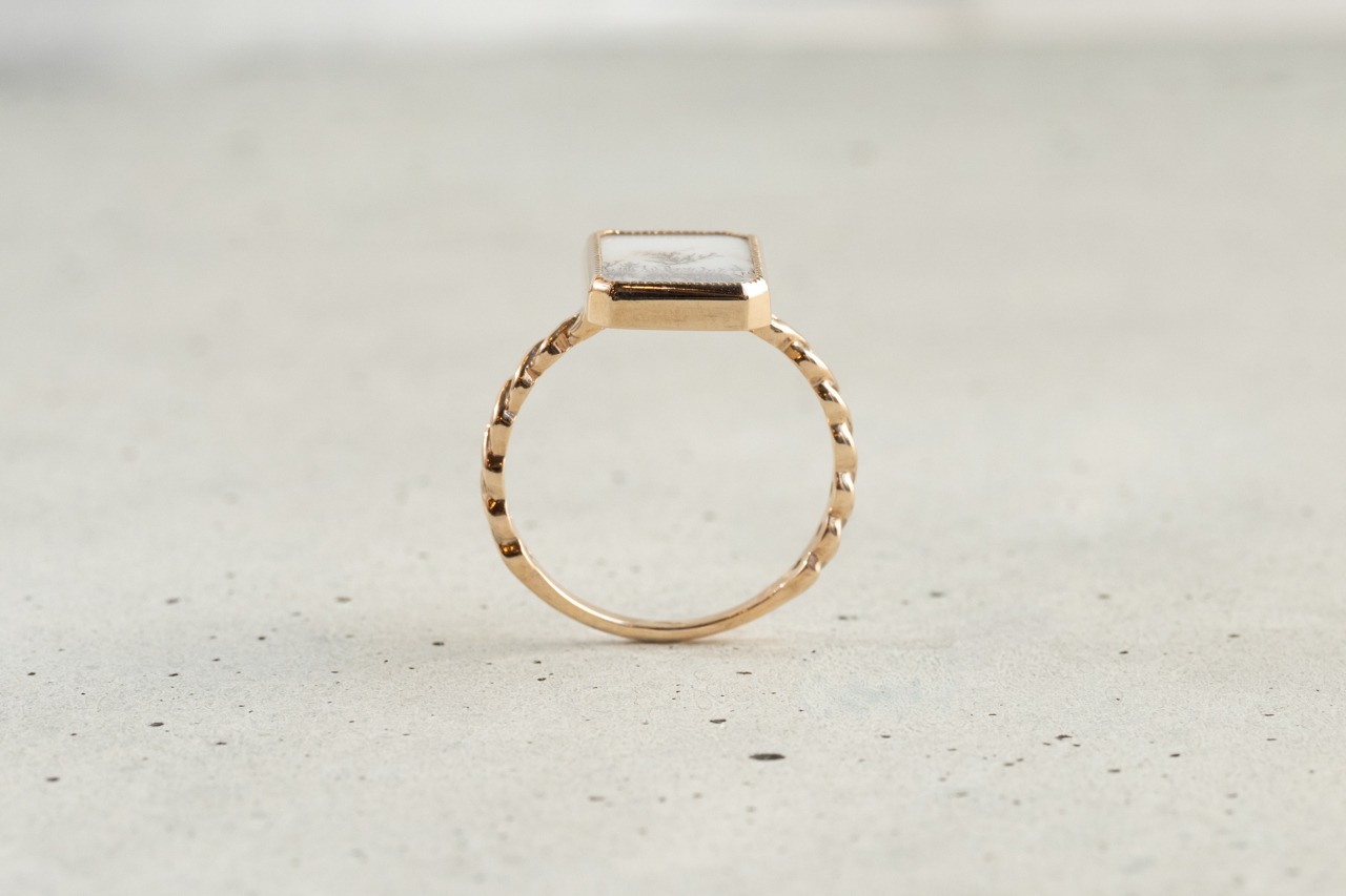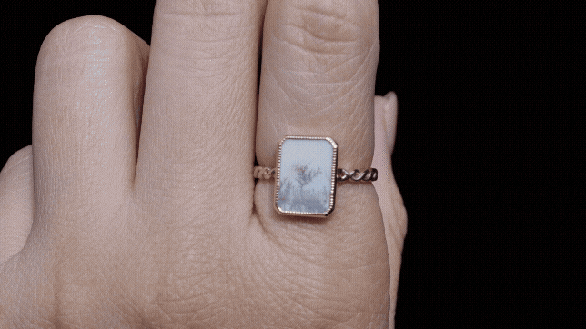 模様は特に風景画になるような部分を厳選して切り取っていて、石枠も額縁をイメージしています。アーム部分は植物のツタをモチーフにしています。
