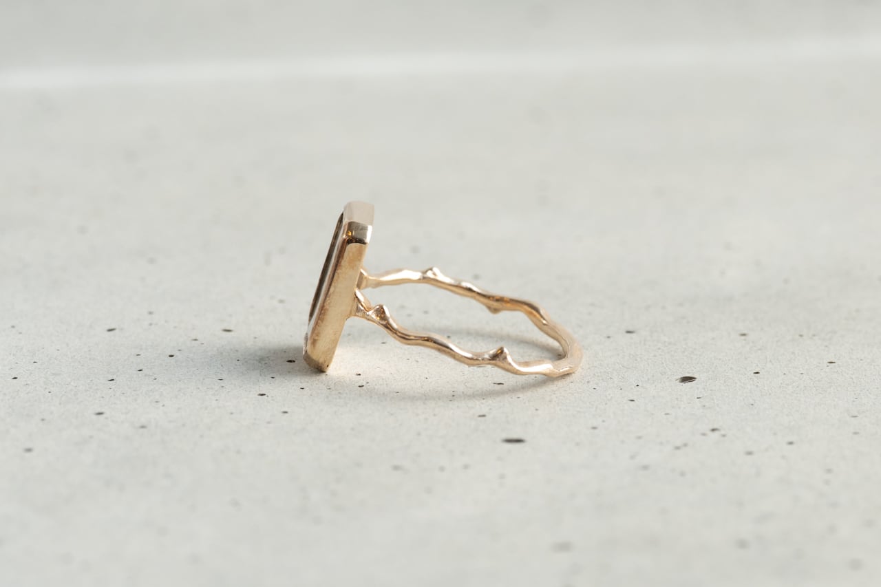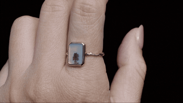 模様は特に風景画になるような部分を厳選して切り取っていて、石枠も額縁をイメージしています。アーム部分は植物の枝をモチーフにしています。