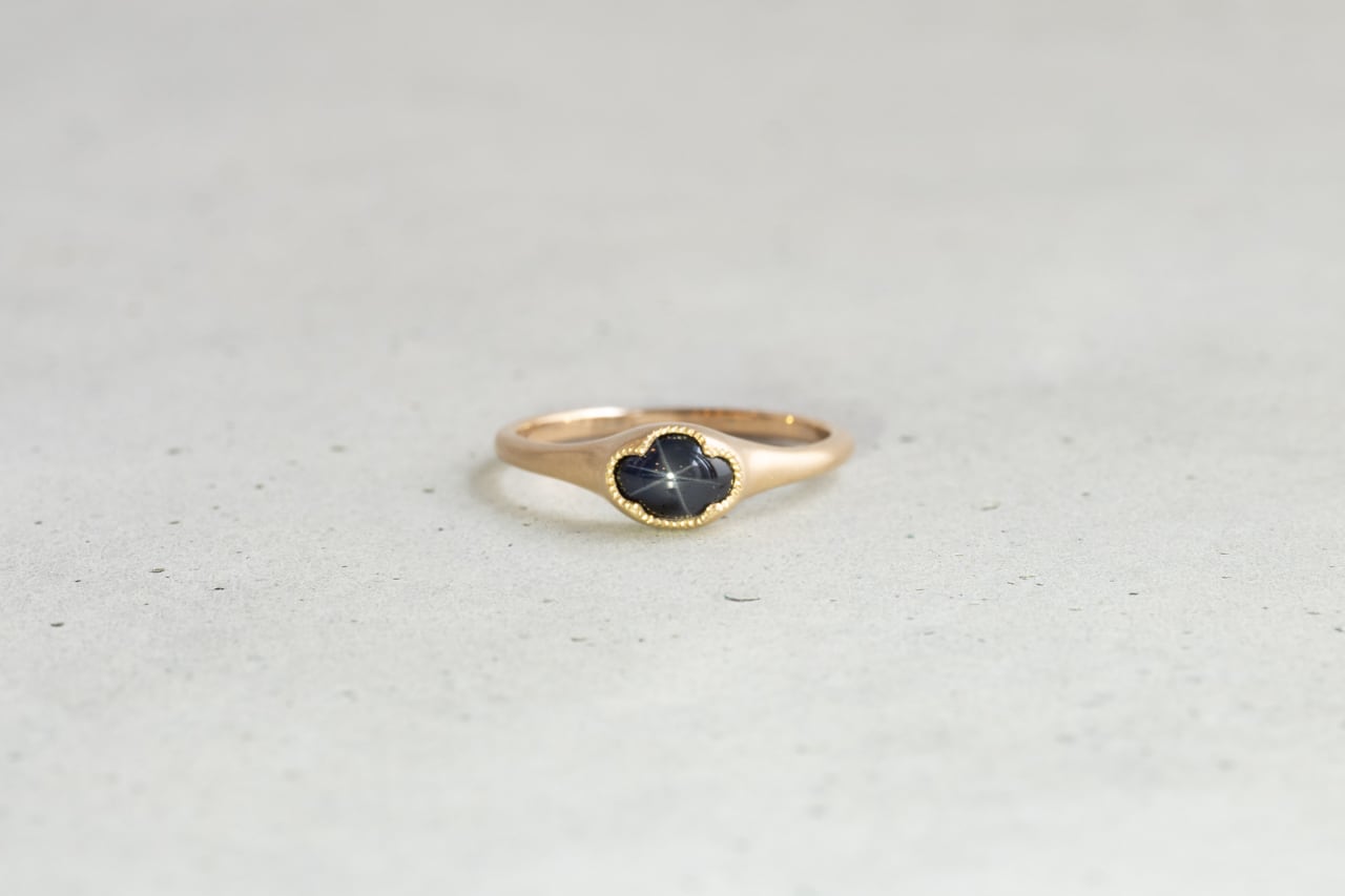 スタースピネルは、スピネルの中でスター効果(アステリズム)が出るものです。スター効果とは、石の内部に含まれる針状の包有物が特定の方向に配列しており、光を受けたときに表面に星状の光の筋が現れる現象で、このスタースピネルは六条の星が現れます。