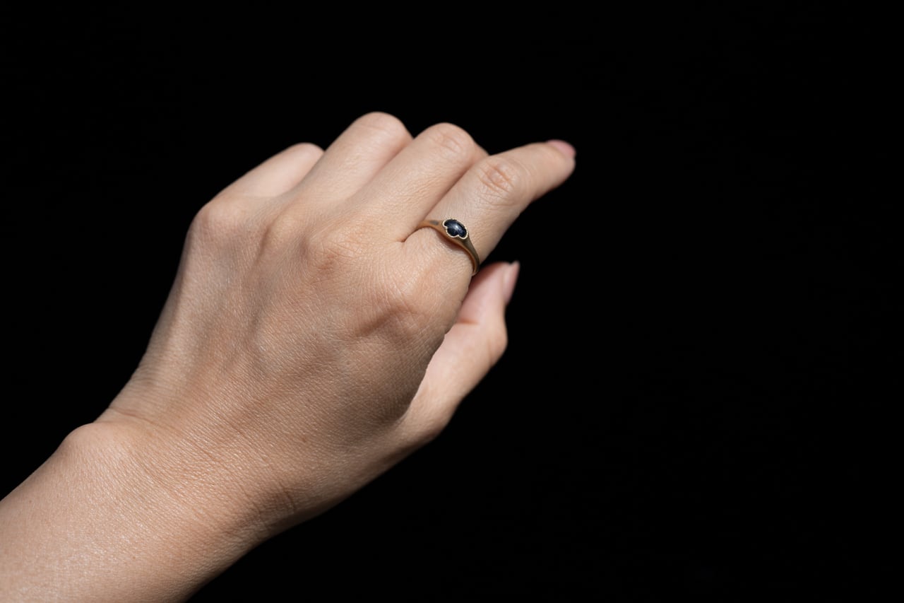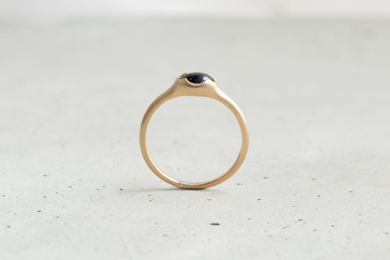 花の萼をモチーフにした石枠で包み込むように石を留めているデザインです。