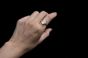 花の萼をモチーフにした石枠で包み込むように石を留めているデザインです。
