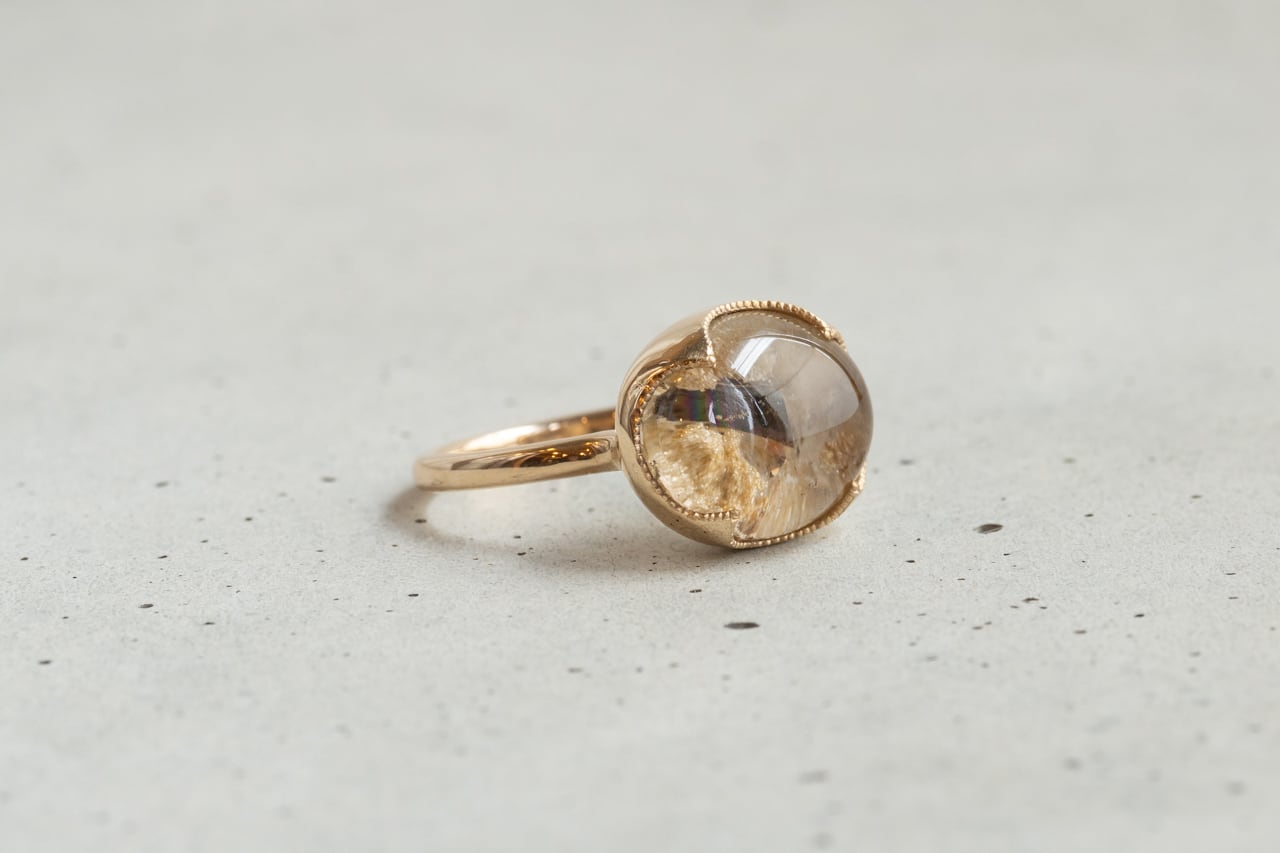 パイライトインガーデンクォーツを使用した指輪です。