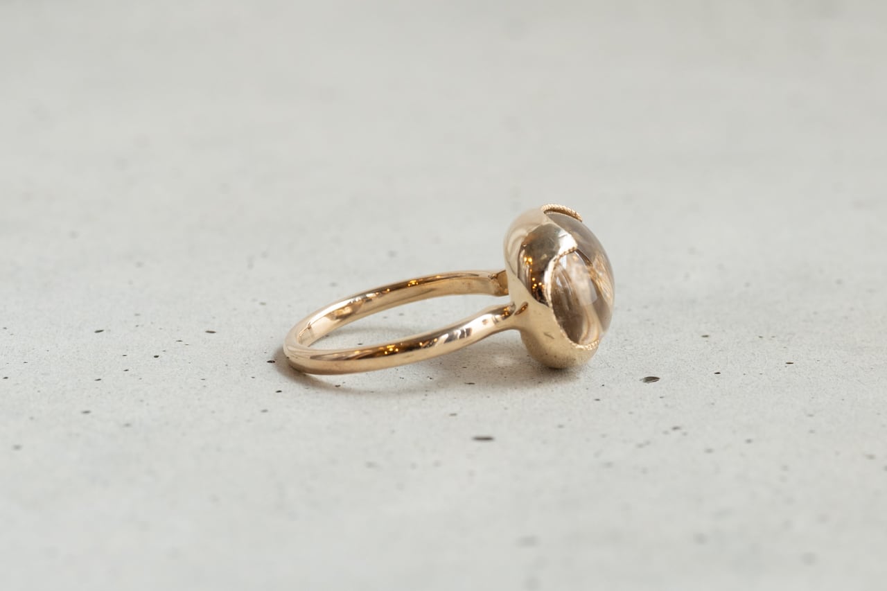 花の萼をモチーフにした石枠で包み込むように石を留めているデザインです。