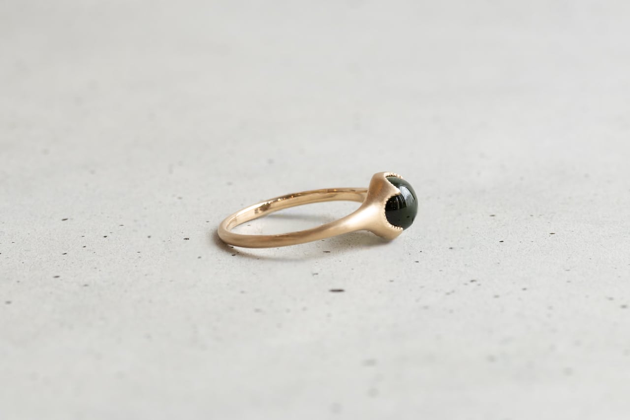 花の萼をモチーフにした石枠で包み込むように石を留めているデザインです。