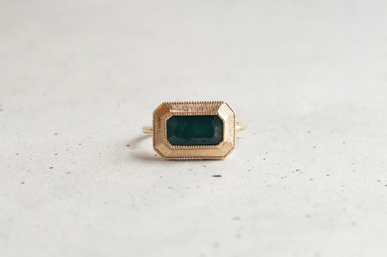 額縁をモチーフにしたデザインで、二重のミル打ちとその間はタガネで刻みを入れています。