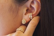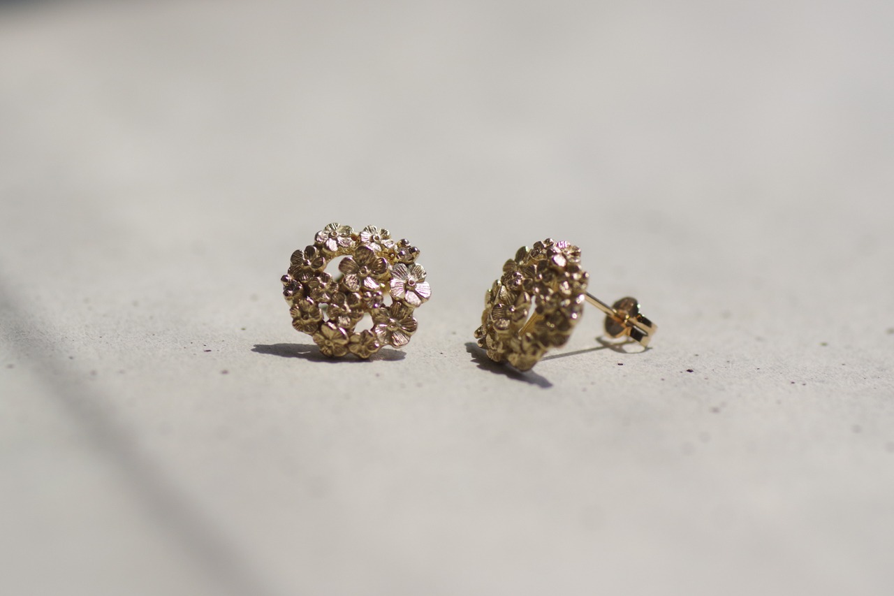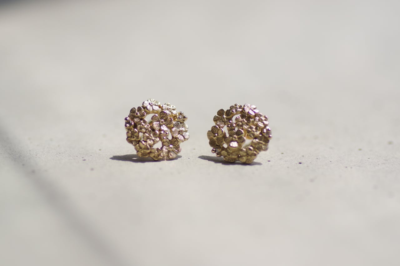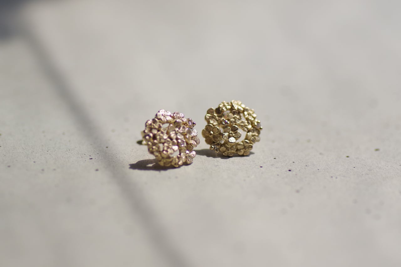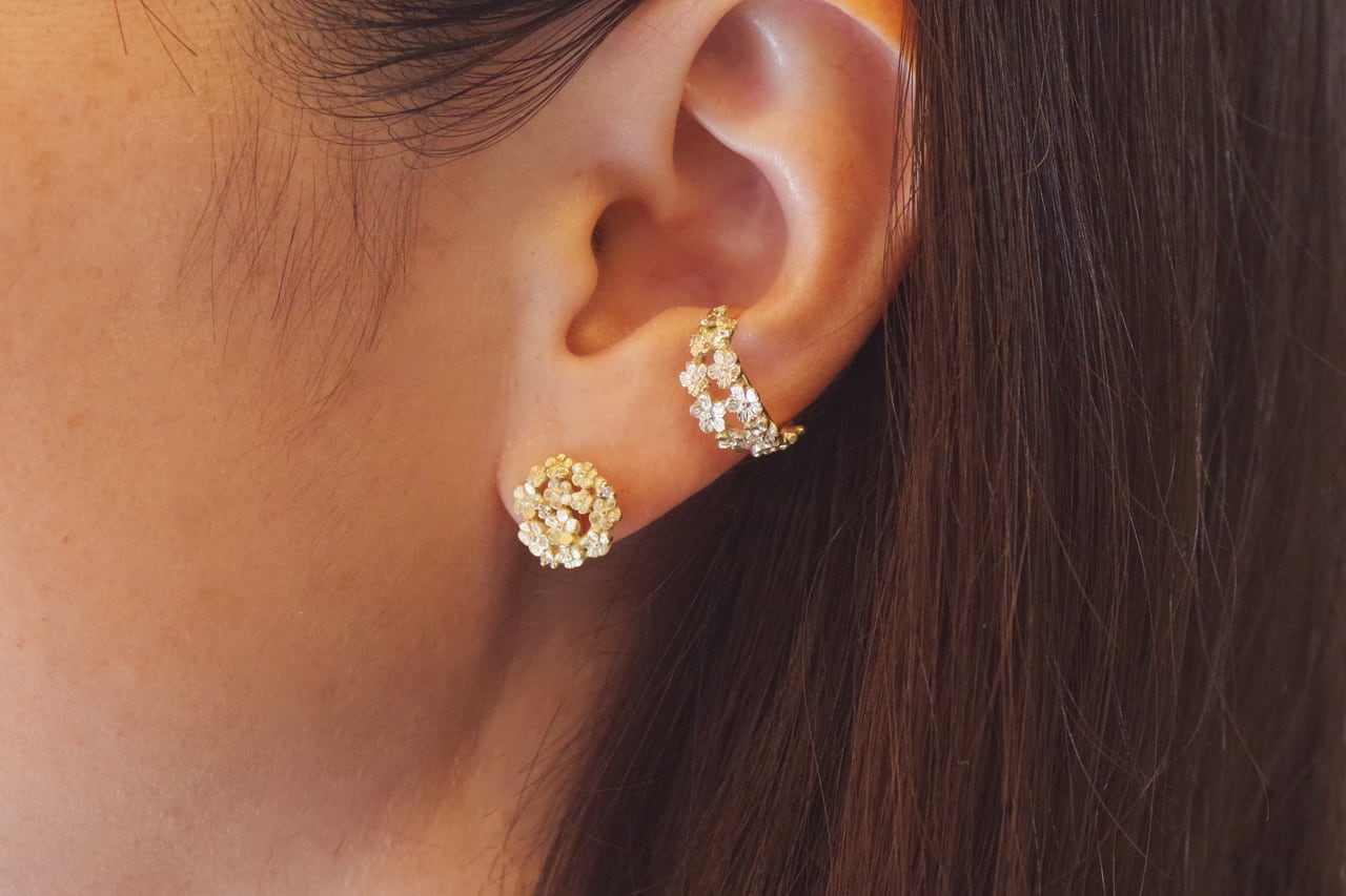 花の間にダイヤモンドが片耳3石ずつ散りばめられています。